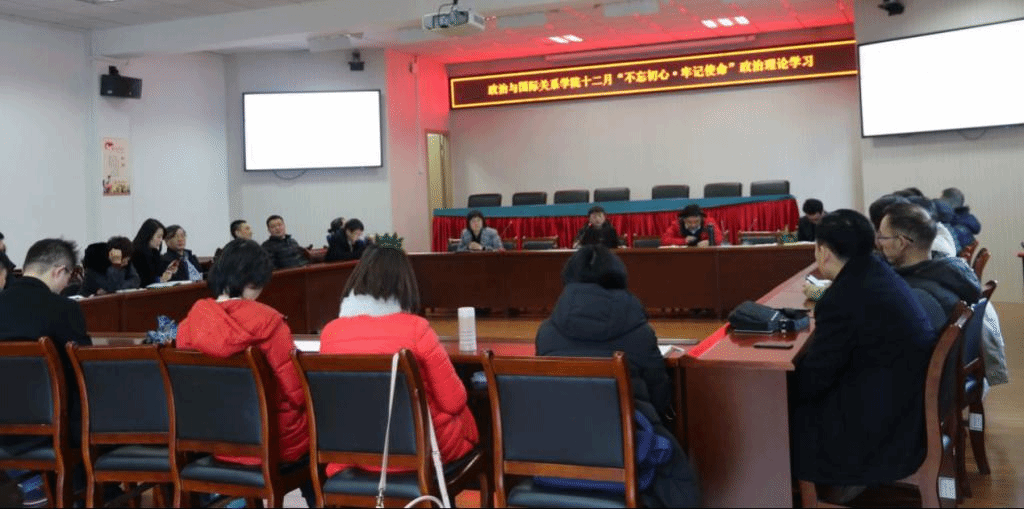 (通讯员 麦沛玲 王雨 )12月28日,政治与国际关系学院12月政治理论学习于大学生活动中心403报告厅举行,此次政治理论学习主要分为两项议程,一是学习十九届四中全会重要精神,二是学习有关师风师德建设精神。本次理论学习由政治与国际关系学院党委副书记秦恒主持,政治与国际关系学院全体教职工参加。