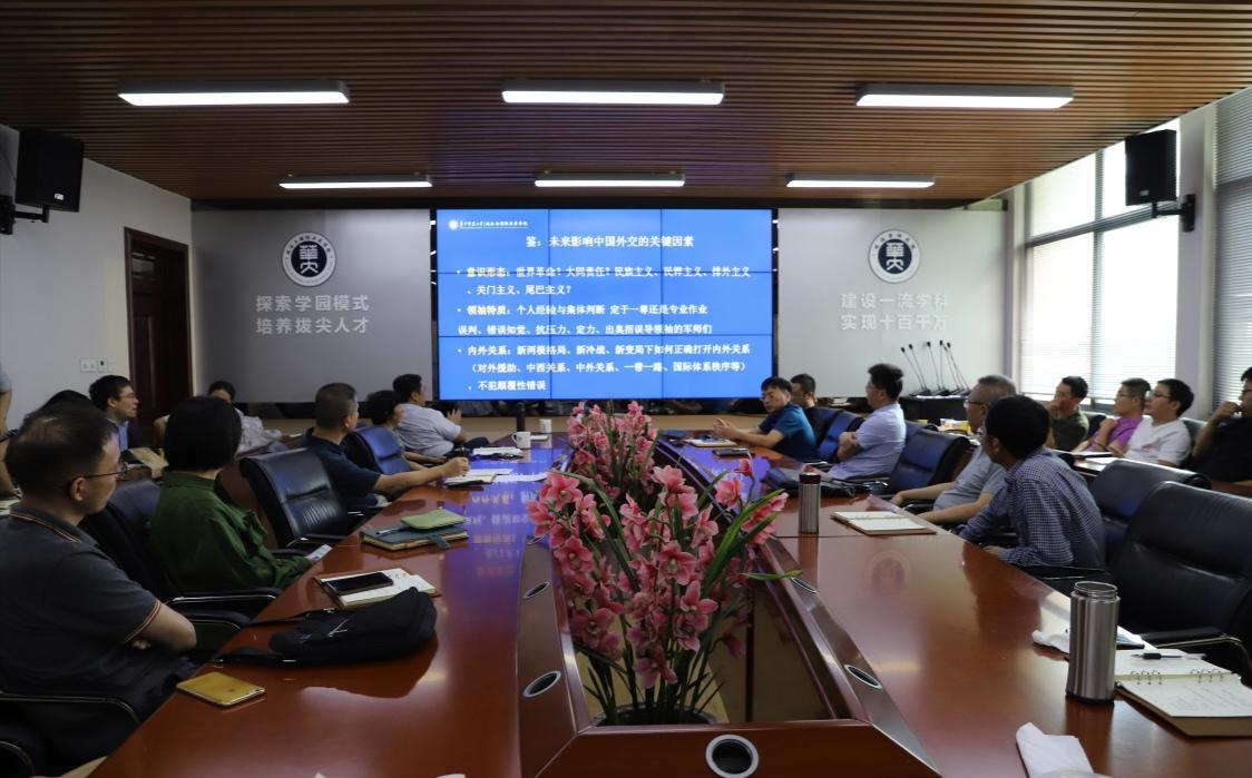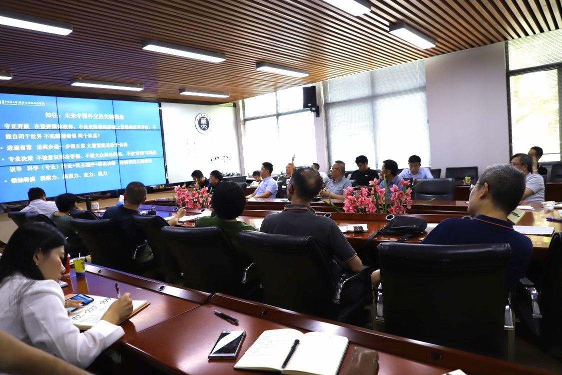 随后 ,全体教职工再次学习了习近平总书记在新中国成立70周年的讲话。此外,以新中国成立70周年为契机,王建国副院长、唐鸣教授、胡宗山院长分别谈了他们的感想。王建国副院长以“中国道路何以自信”为主题,强调了中国道路的优越性。他讲道,中国特色社会主义道路是符合我国国情的道路,是符合人民群众根本利益的道路,是使中华民族走向繁荣富强的正确道路。接着,唐鸣教授结合他暑假访学经历,由衷肯定和赞扬了我国人民的奋斗精神。他表示,我国的发展不是别人施舍和恩赐的,而是中国共产党带领中国人民奋斗出来的,我们要传承和弘扬伟大的奋斗精神。最后,胡宗山院长以“鉴往知来,新中国外交70年的启示与前瞻”为主题,分析未来影响中国外交的关键因素和未来中国外交的关键概念,充分肯定我国70年外交取得的成果,同时也表明对我国未来外交发展的期待。