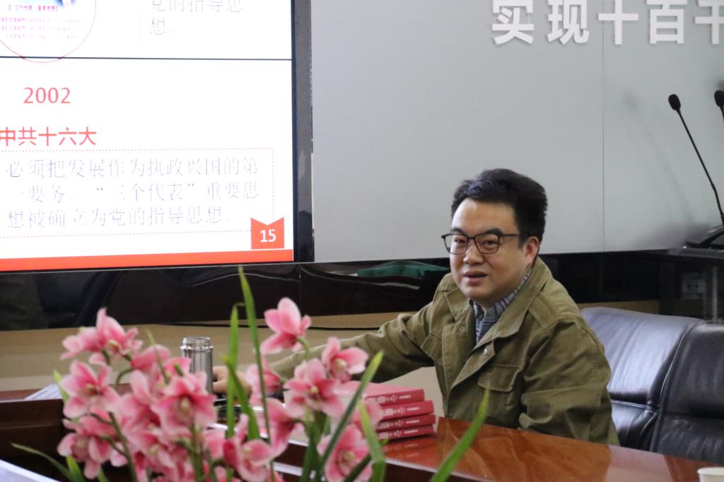 首先,黄辉祥副院长从党史发展脉络及学习意义、新民主主义革命时期、社会主义革命和建设时期及改革开放和社会主义现代化建设时期等方面向与会人员讲授了党98年的历史进程。