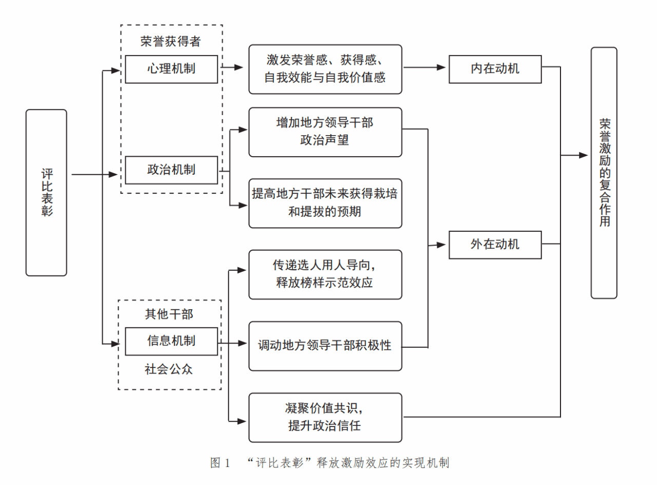 国际学界的研究提示我们,有必要跳出单一的晋升导向逻辑,重新审视地方领导干部激励机制的结构性特征。实际上,地方领导干部的激励是一个多重因素共同耦合的过程。传统理论往往采取单一的自下而上视角,过度聚焦“为增长的竞争”,将职务晋升视为领导干部施政能力和个人政治关系网络的产物,却较少关注上级尤其是来自中央的非物质激励,进而忽视了兼具自下而上与自上而下特点的荣誉表彰激励方式(简称“评比表彰”)的作用。