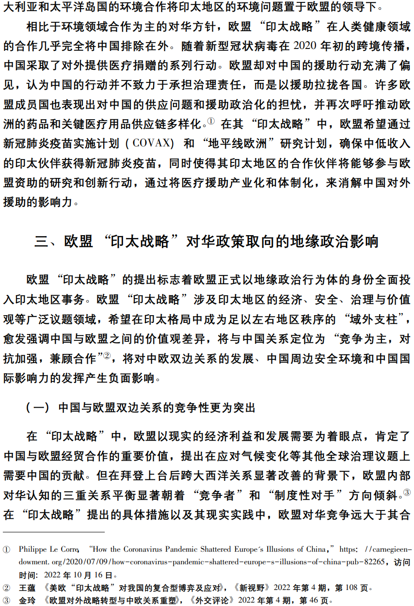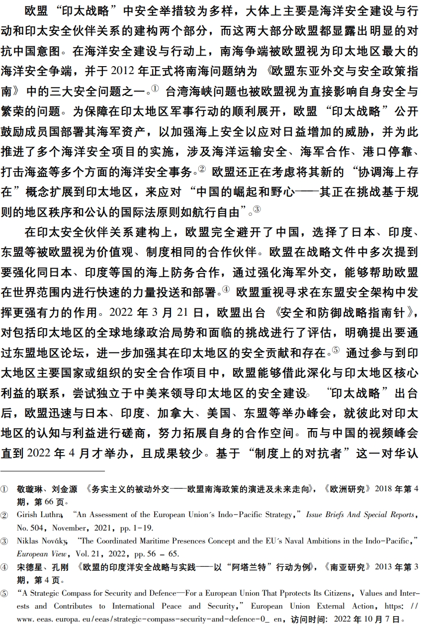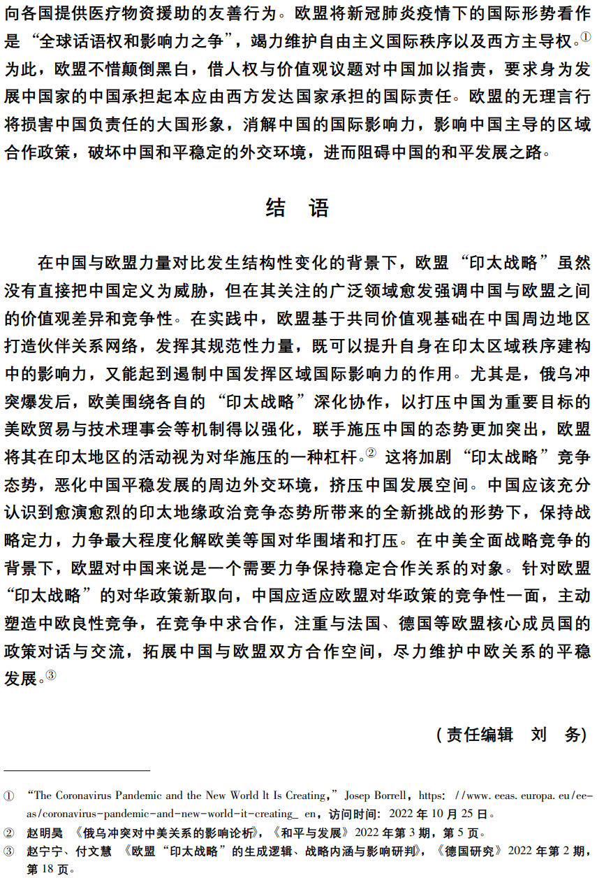 《欧盟“印太战略”对华政策取向及地缘政治影响》