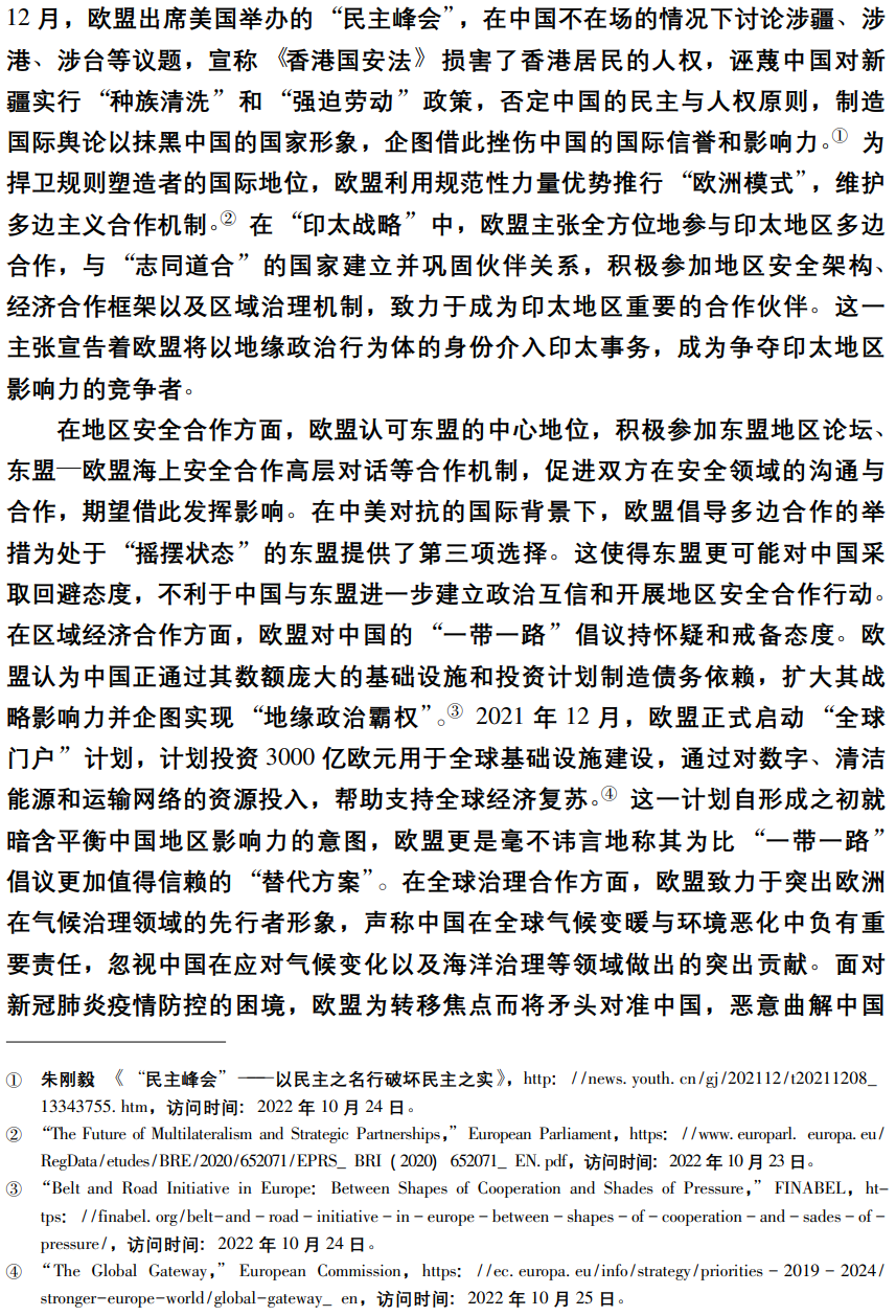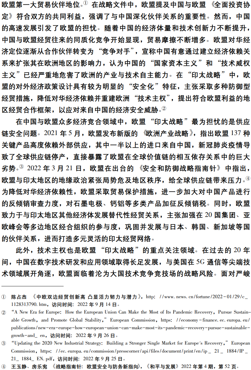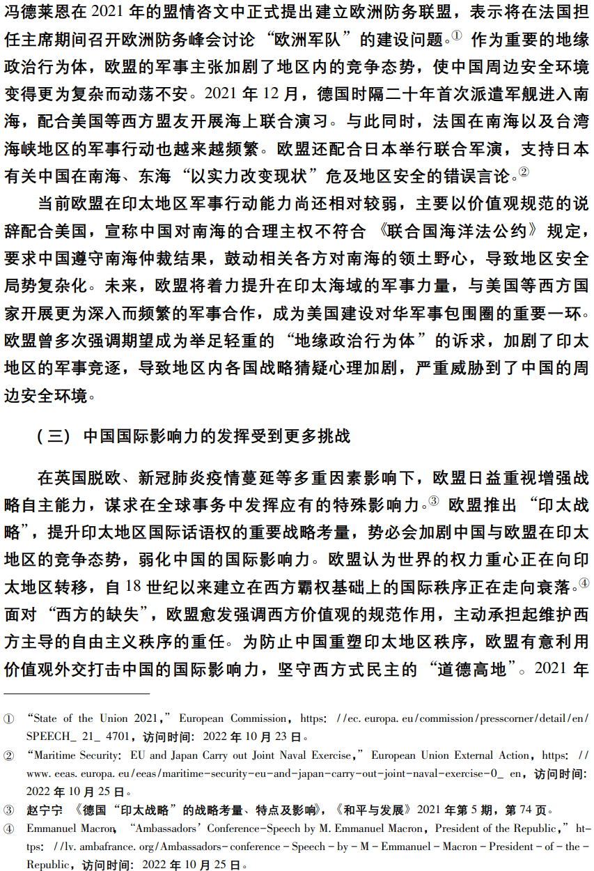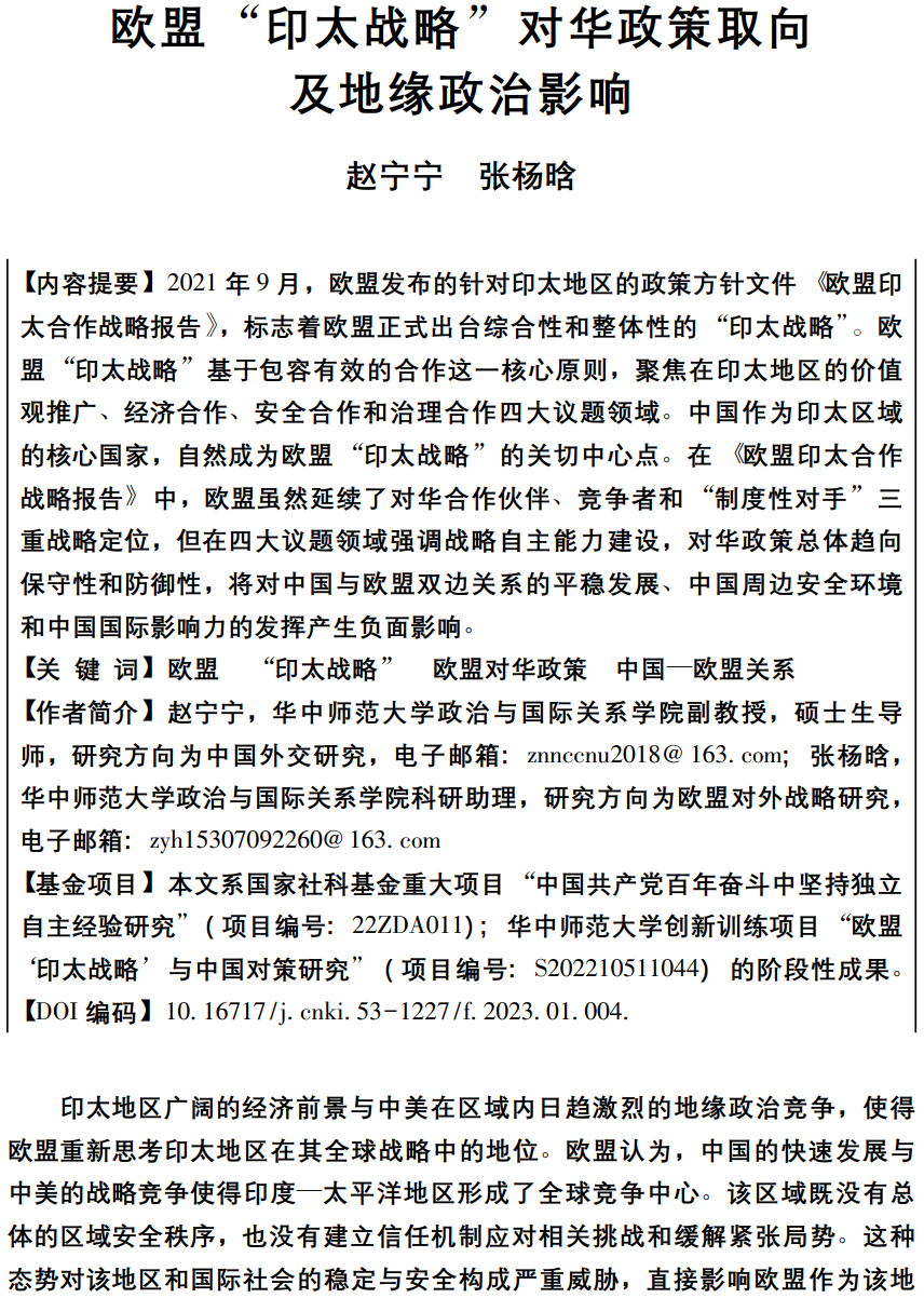 《欧盟“印太战略”对华政策取向及地缘政治影响》