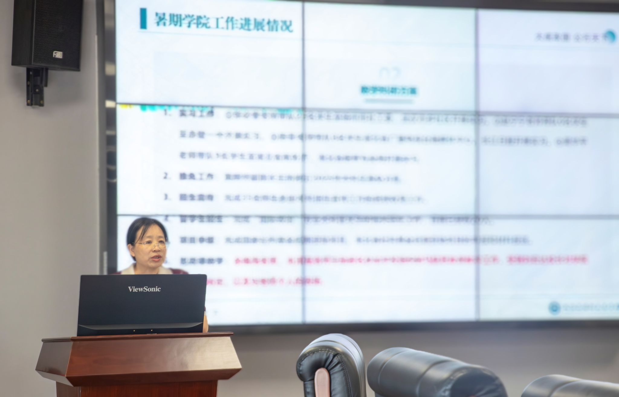 闫书记通报了暑期学院工作进展情况:一是“行走的党课”在河北西柏坡开讲,师生们在红色土地上汲取奋进的力量。二是就业工作稳步推进,学院初次就业率达92.43%,其中本科就业率达95%,位居全校第二,非师范院系第一。三是五十九支暑期实践队奔赴祖国各地,三支境外交流团队分别赴港澳、新加坡、欧洲进行交流学习。四是学生实习工作点位有效拓展,实习工作质量显著提升。闫书记对暑期获得各类荣誉、取得优秀科研成果、积极支持学院工作的教师们予以肯定和鼓励,希望各位老师再创佳绩。