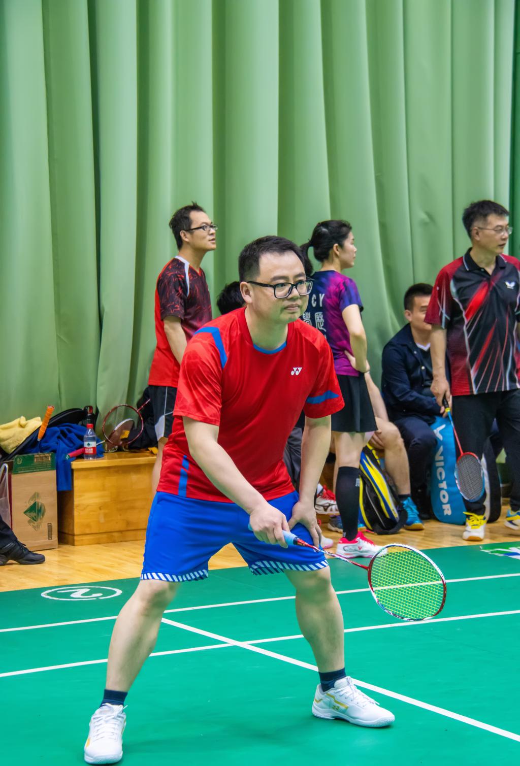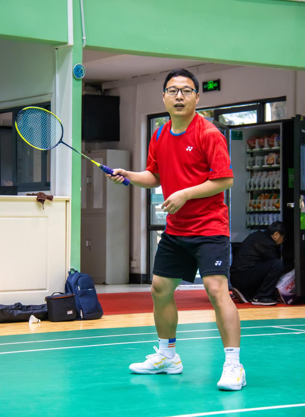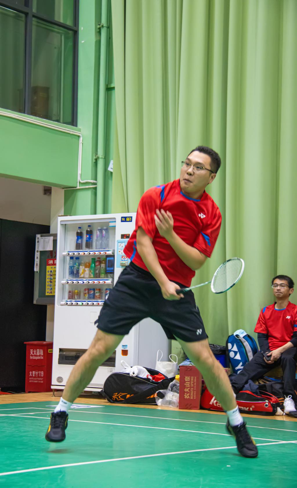 在场边等待上场的老师们也全神贯注地关注着比赛情况。羽毛球和球拍清脆的碰撞声中,老师们的喝彩和呼唤声此起彼伏,为队友们加油呐喊。