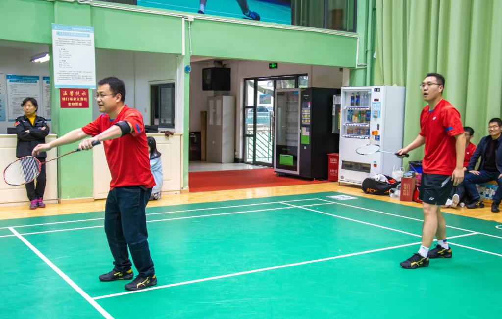 在下午2点举行的首轮比赛中,由韩瑞波老师和肖泽磊老师组成的第一男双率先代表学院出场。在首局失利的情况下,他们奋起直追将比分追至1:1平。随后的决胜局战况激烈,比分十分接近,我院以1分之差惜败。随后,由李晶老师和赵琳老师组成的混双直落2局战胜对手,为我院扳回一分。紧接着,由秦恒书记和吴淑芳老师组成的女双,以及周华平老师和丁羽老师组成的第二男双接连战胜对手。最终,我院教职工以3:1的成绩战胜了新闻传播学院代表队,取得了开门红!