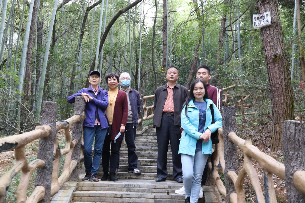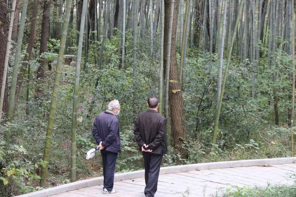 下午,大家一同乘车前往江夏区熊廷弼公园散心,顺着幽静长廊,依次观赏了错落有致的池塘和熊廷弼、项英雕塑。参观过熊公祠,走过幽深的竹林后,各位退休教职工在青藤砖墙下互相交流、分享自己近来的有趣见闻,气氛轻松活泼。众人来到废弃的军事基地旁,凝望沉思。听段书记讲述学院几十年的变化,老师们兴致勃发,思绪万千。老党员俞思念教授与志愿者们讲述了他在华中师大的教职生活,分享了他的感触:“学校组织的活动让我们退休教师有机会相聚,彼此感情更为融洽;这种风和日丽的日子,更是锻炼的好时候,让人心情愉快。”