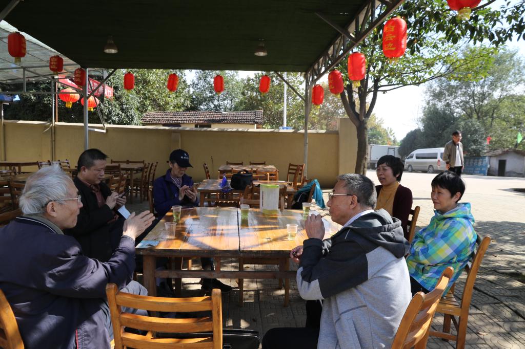 秋日的阳光格外明媚,岁及花甲、古稀和耄耋的老教师聚在一起,精神饱满、兴趣盎然,共叙往日情谊。随后,老教师们在环境优美的农庄里游玩、拍照,有说有笑,走进大自然,欣赏深秋的景色,强身健体。中午,大家一同在农庄品尝了农家菜。休息间歇,段书记也向大家分享了习总书记的讲话,询问老同志们的党组织生活情况,同时,老师们交流彼此快乐和长寿的心得。