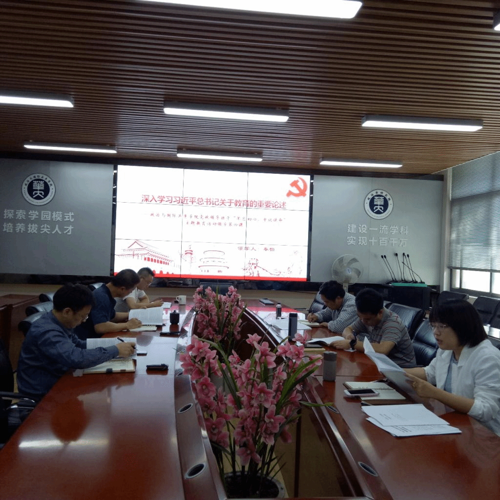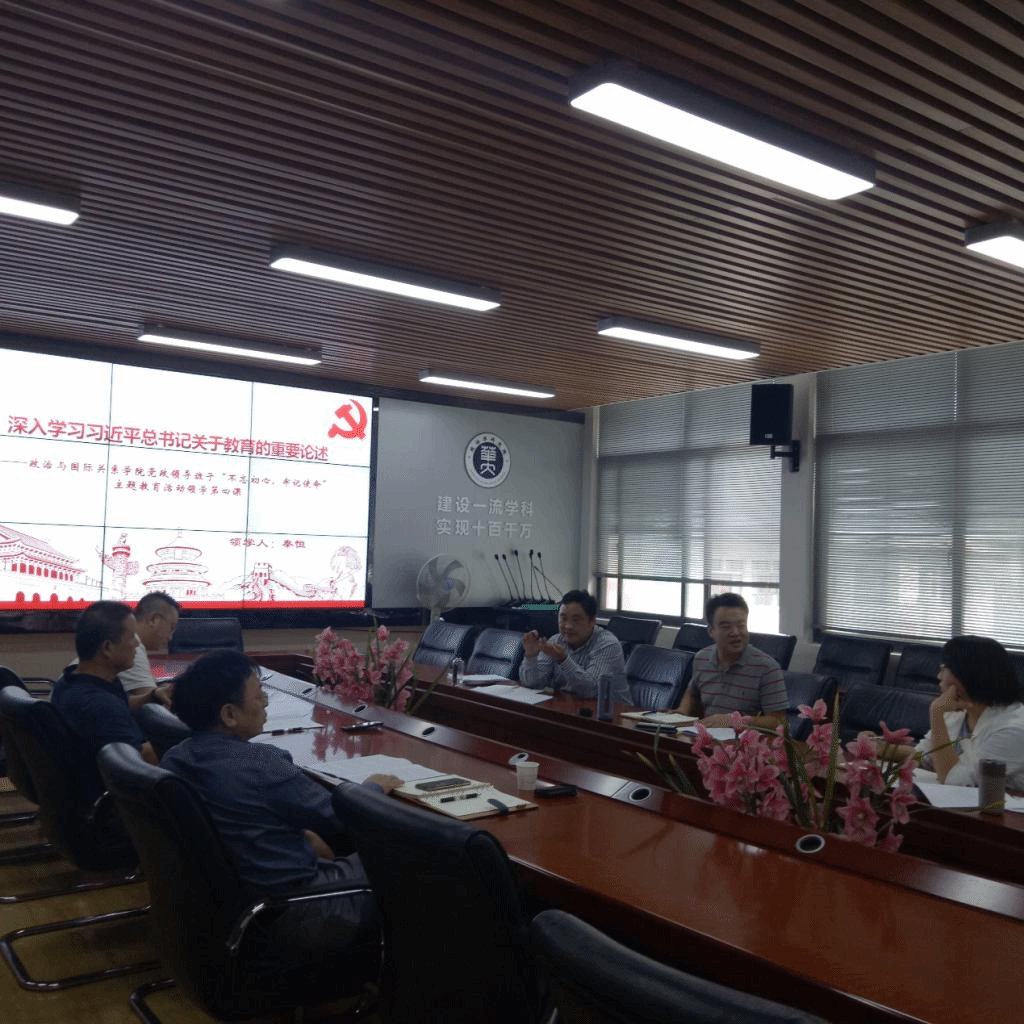 随后,与会领导以座谈讨论会的方式围绕“不忘初心,牢记使命”这一主题教育活动展开讨论,联系各自工作职责和思想认识交流了自己的学习感受。通过交流讨论大家深刻理解了“不忘初心、牢记使命”主题教育的意义,作为党员要认清自己的使命担当,牢记为人民服务的本质,勇敢面对工作中的困难与挑战,认真履行好自己的职责;作为教师,必须坚守理想信念,要不断提高道德修养,丰富专业知识,牢记育人使命,要在深入学习习近平新时代中国特色社会主义思想和党的十九大精神基础上,深化对习总书记关于教育的重要论述的学习研究,努力办好人民满意的教育。