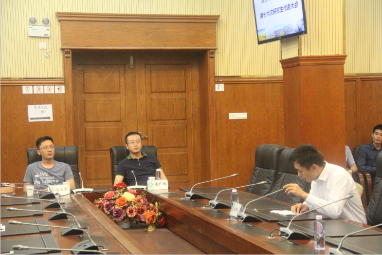 本次会议主要是在结上一学年我院学生工作尤其是研究生会工作的基础上选举出新一届研会成员。我院第15届研究生会副主席陈泽华做年度工作报告。他从组织建设、活动开展、主要成绩、不足之处等几个方面向与会成员详细汇报了上一年度的主要工作,得到与会代表的一致认可。