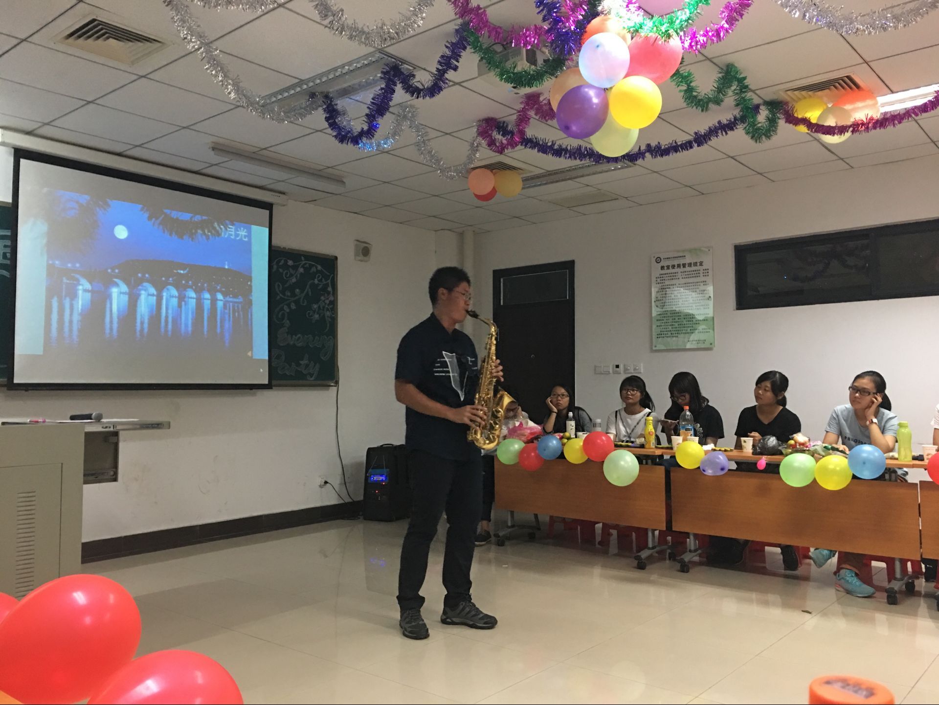 高潮过后,观众们又沉浸于关佩然同学萨克斯曲的优美意境中。2024寝室的三个女生,袁鹏辉、陈事王慧同学富有个性、饱含深情的歌曲演唱后,“萝卜蹲”游戏再添高潮。黄万轩与荣瑞同学的小品《说地名》对世界多个地名进行了幽默地诠释,令人捧腹。2022寝室四个可爱女生以堪比“奥斯卡影后”的演技呈现了一出精彩的情景剧。作为压轴节目的相声《小话西游》由李一凡同学倾情表演。而晚会最大的惊喜则是全场师生一同为“寿星”胡果果同学庆生,这也使得晚会在温馨的气氛中圆满落幕。