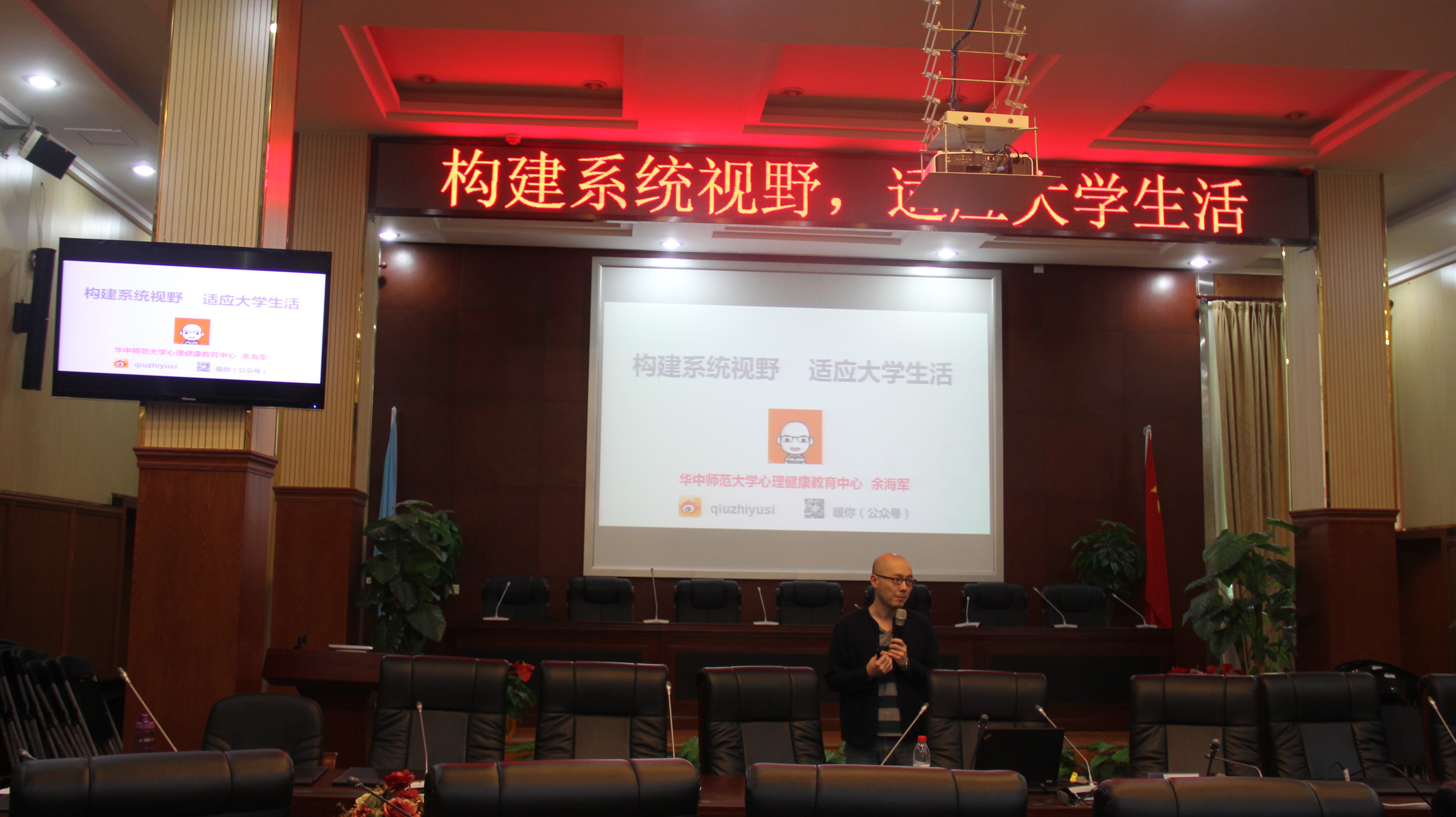 (通讯员:邱心怡)10月18日下午4点,我校心理健康教育中心讲师、临床与咨询心理学硕士余海军老师作客模拟联合国会议室,为政治与国际关系学院的本科生与部分研究生,开展了以“拓展系统视野 适应大学生活”为主题的讲座。