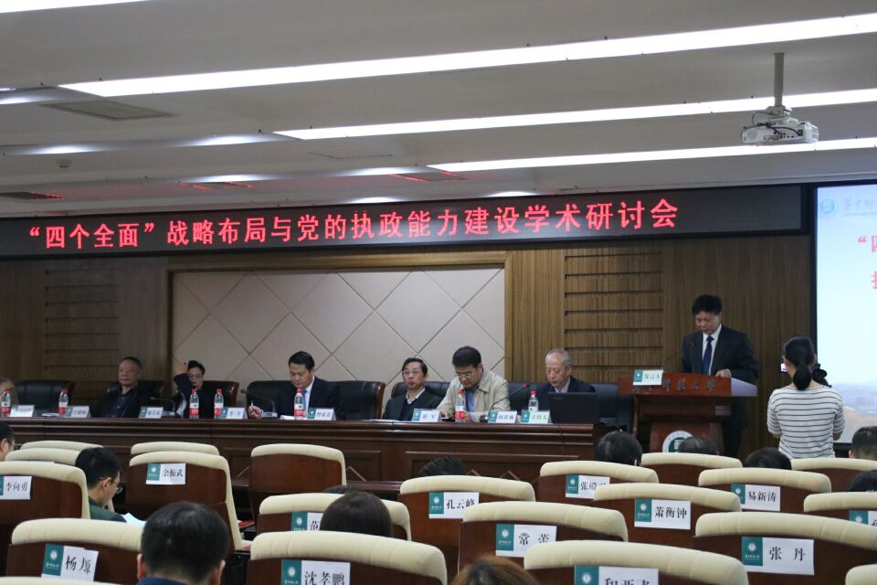 (通讯员 张德林)10月22日,由《社会主义研究》编辑部和“湖北党的建设研究中心”联合举办的“‘四个全面’战略布局与党的执政能力建设”学术研讨会在华中师范大学逸夫国际会议中心一楼报告厅举行。中共湖北省委党建办主任李平、华中师范大学党委副书记谢守成、党委常委、组织部长骆军出席会议,来自国家行政学院、中国社会科学院、中共中央党校、中国人民大学、武汉大学、复旦大学、湖北省社会科学院等高校、省市党校、科研院所的100余位专家、学者参加了本次研讨会。