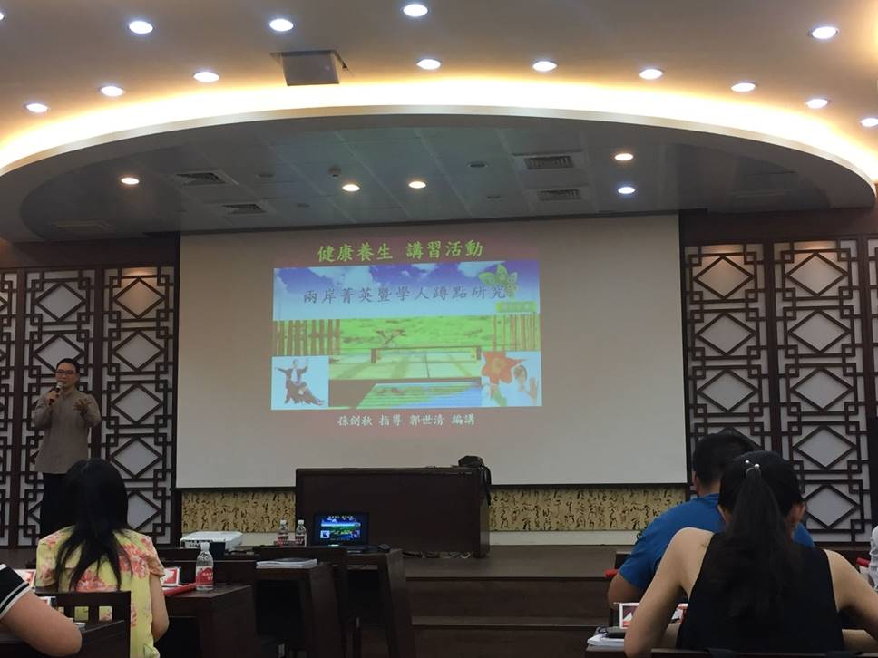 下午,台湾国防大学通识教育中心副教授郭世清老师为大家带来了“达摩易经棍·养生兼回春”课程。郭世清教授在带领大家一起学习达摩易经棍法前,专门跟同学们强调了身体健康的重要性,他认为“昨天的我很聪明,想要改变世界;明天的我更智慧,正要改变自己。改变自己要从参与锻炼、强身健体开始”。随后,同学们就跟随郭教授一起站起身完成了一整套四式达摩易经棍法。