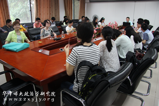 2015年5月19日晚,政治学研究院2014级第二支部全体成员在院309会议室召开学习贯彻“四个全面”研讨会,本次会议由支部书记王瀚主持,本次学习文件是由华中师范大学“关工委”“老教授协会”等八个单位合力撰写完成的《“四个全面”引领民族复兴学习专辑》。