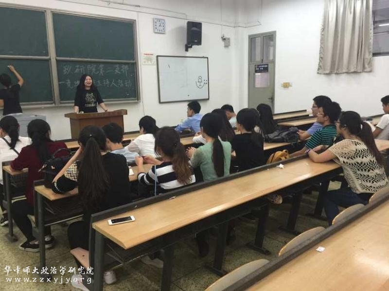 为全面学习贯彻习近平总书记系列重要讲话精神,9月27日下午3时许,政治学研究院2015级第二支部以“理论学‘习’我来讲”为主题,在8号教学楼8103教室开展了班级“百生讲坛”优秀主持人竞选活动。