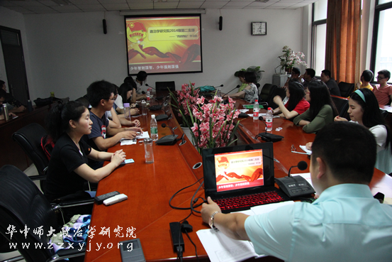 最后支部书记王瀚对本次活动做了总结。他表明,本次会议并不是形式化的学习会,希望大家切实的明白“少年智则国智,少年强则国强”,研究生作为青年中的学习榜样,应在学习的同时,认真学习“习近平总书记系列重要讲话”,积极引导身边的人学习和贯彻“社会主义核心价值观”“四进四信”等时代精神,从而让我们所生活、学习的环境变得越来越好。