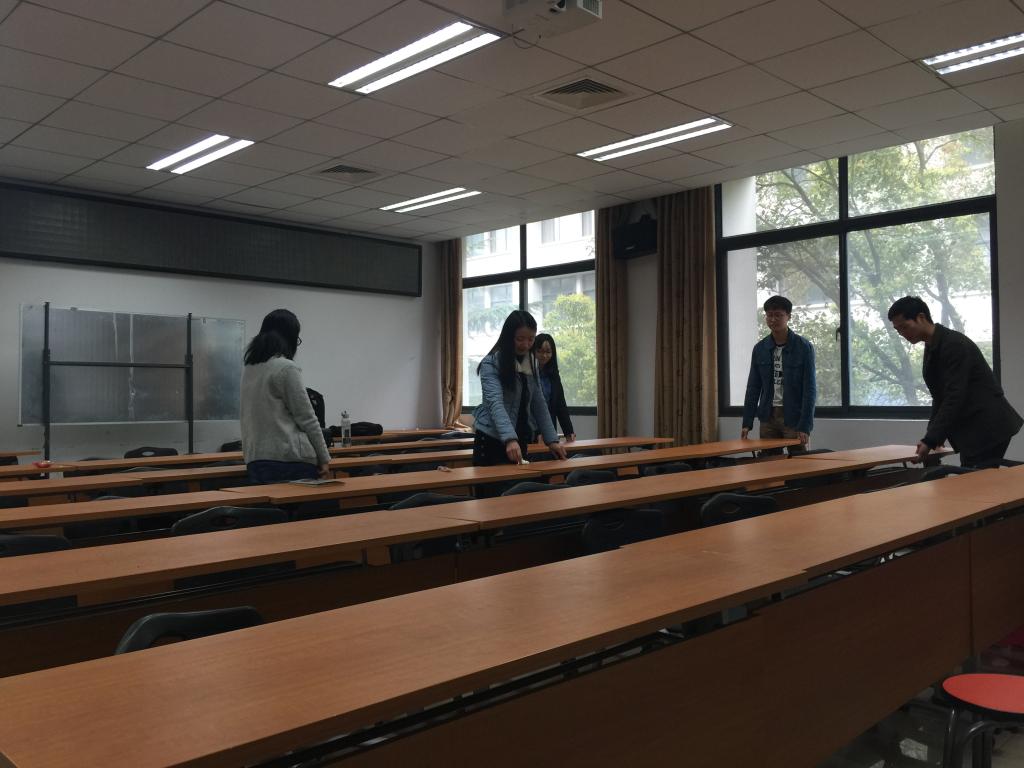 生活委员马容莉带队并组织本支部同学来到本院313教室,仉冰同学就本次活动规则和内容进行了说明。