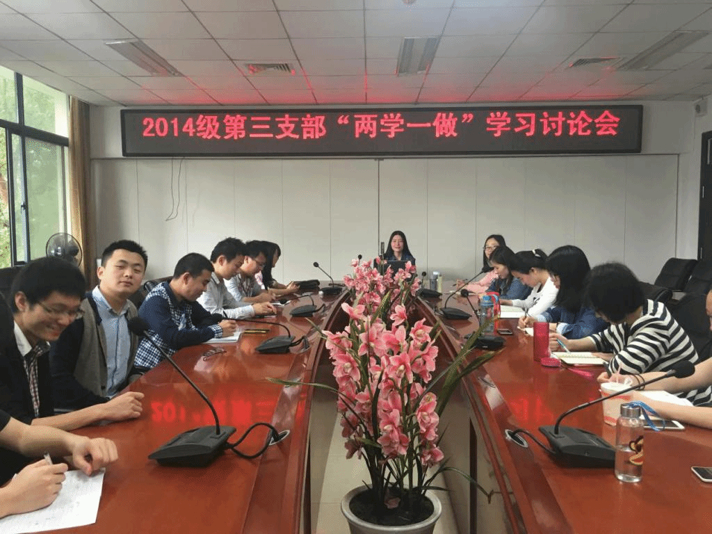 2016年2月,中共中央办公厅印发了《关于在全体党员中开展“学党章党规、学系列讲话,做合格党员”学习教育方案》,并发出通知,要求各地区各部门认真贯彻执行,为响应党中央,学校、学院的积极号召,2014级第三支部于2016年4月22日上午举行“两学一做”学习交流讨论会,会议由支部书记程蕊主持。