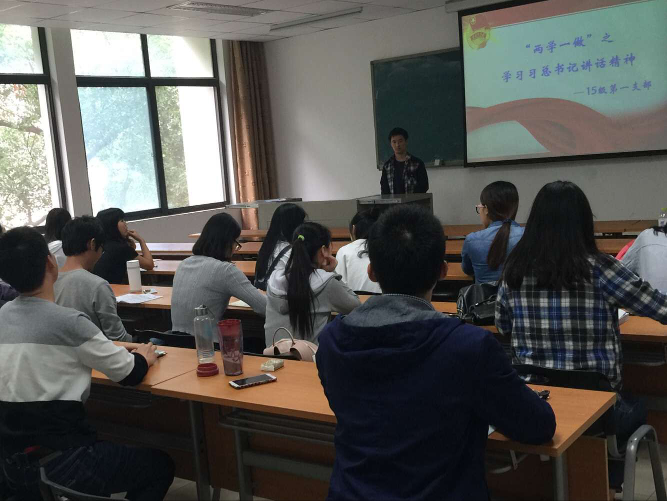 (通讯员郭松)2016年5月10日下午,15中外支部全体成员在学院313教室开展“两学一做”专题学习活动,深入学习习总书记的系列重要讲话精神,争做“有理想、有道德、有文化、有纪律”的新青年。