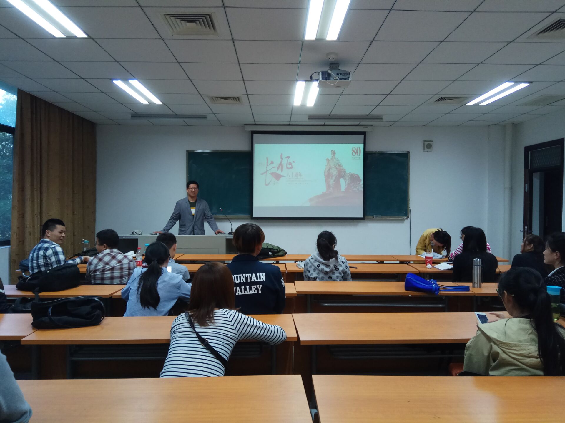 本次学习讨论会于2016年10月17日下午在政治与国际关系学院313教室举行。活动一开始,支部书记朱攀登就举办此次专题学习讨论活动的缘由及意义进行了讲话,他表示,在纷繁复杂的现代社会中,我们面临着各种诱惑和冲动,在这样的时代背景下,党员、共青团员加强思想学习,传承和弘扬长征精神是至关重要的,这也是我们召开这次活动的目的之一。