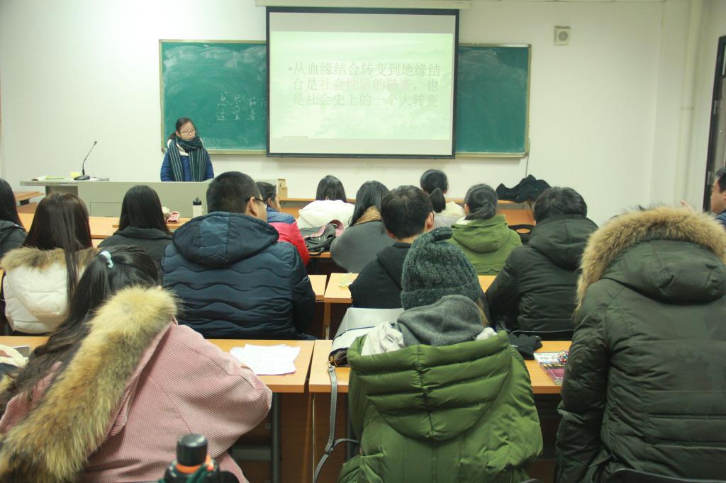 分享会由四个部分组成---小组展示、同学提问、班级讨论、老师解惑。分享小组划分三个板块进行探究:血缘与地缘、文字下乡、人治礼治与法治。首先,梁欣竹同学就血缘与社会形态的关系发表了个人观点,她认为血缘观念影响了中国社会的人际交往、行政体制甚至整个社会的社会形态,并与同学们互动提出疑问,指出中国古话“富不过三代”的深刻含义。之后田雨馨同学和吴钦霞同学简要阐述了书中对文字下乡的观点。同时,田雨馨同学也认为该书作者忽略了教育因素对于社会的影响,具有一定的局限性。展示最后,董诗艺同学提出了如何认识人治礼制法制的区别的问题,与在场同学展开激烈讨论,与会同学积极地发表自己的看法。