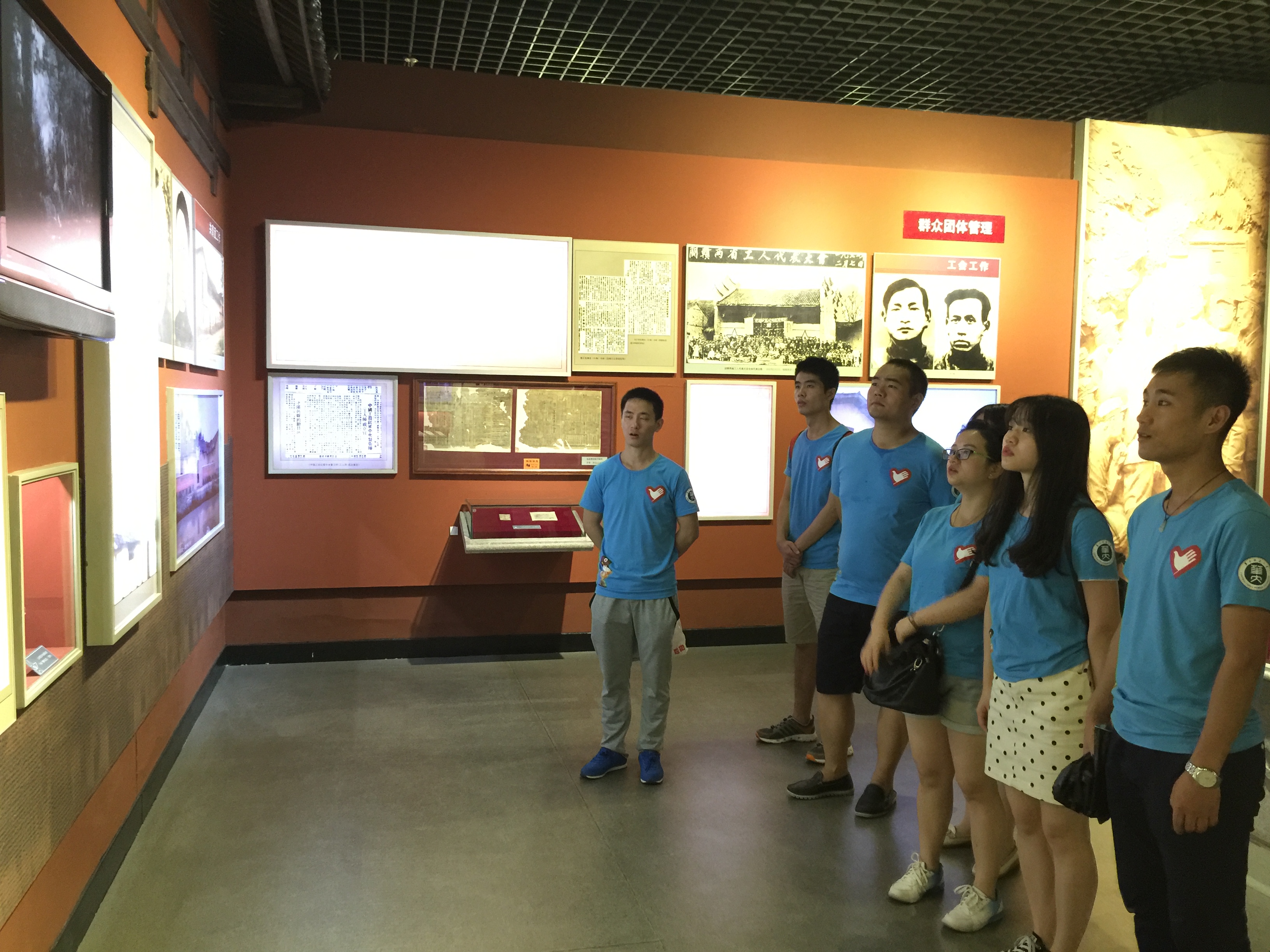 在参观之前,全体队员在苏维埃政权成立纪念碑前举起右拳,进行庄严、神圣的宣誓,承诺一定会“牢记先烈遗志,弘扬长征精神,坚持人民为先、祖国至上,坚定不移地跟党走,坚信党的事业必然成功,百折不挠、自强不息,为实现中华民族伟大复兴的中国梦奋斗终身!”,坚定的誓言朗朗、革命的记忆激荡。随后,实践队在讲解员的带领下,依次参观了各个展厅,切身体验、观察和学习了无数瑞金先烈、革命前辈在建立中央革命根据地之时和长征战略转移的艰苦却令人振奋的历史,为革命老区人民无私支持革命、支持红军、支持建设和改革的奉献精神、牺牲精神。那一张张图片、一帧帧画面、一件件物品,生动地再现了当时的艰难困苦,把从书本上才能学到的知识,生动、具体地展示在队员们眼前,印刻在队员们心中!