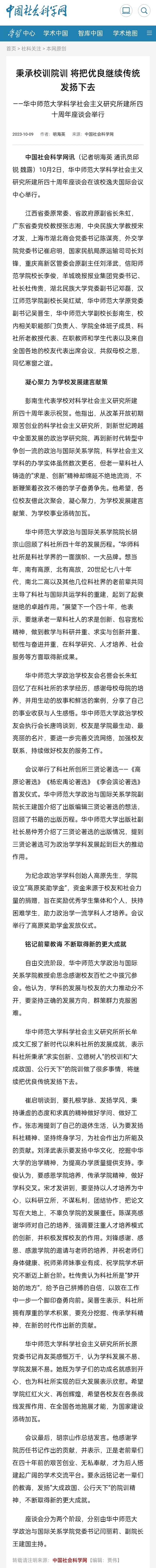 凤凰新闻中心:缅怀“三贤”功绩 传承优良学风 再创学科辉煌——华中师范大学科学社会主义研究所建所四十周年座谈会举行