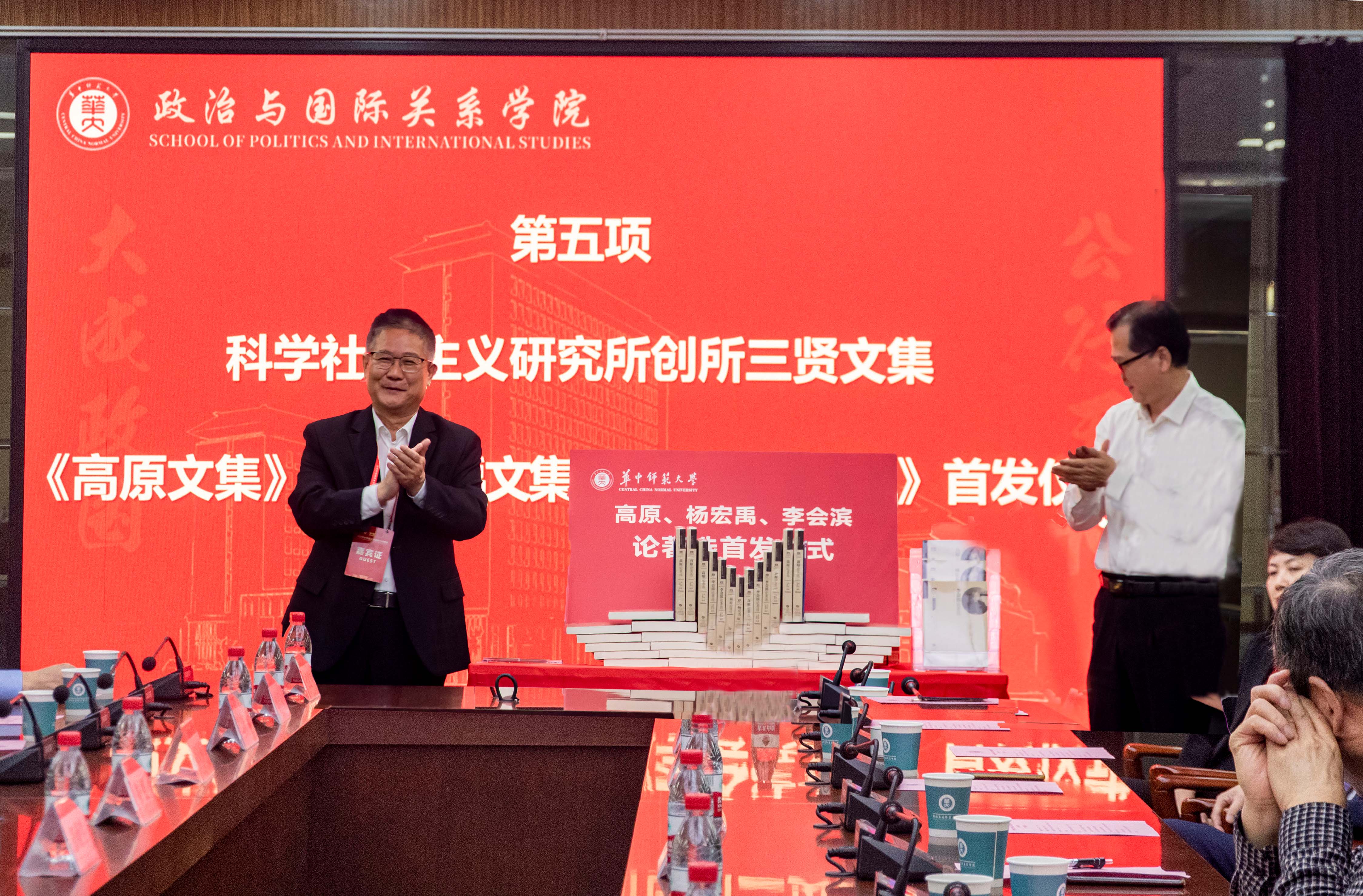 会议举行了科社所创所三贤论著选——《高原论著选》《杨宏禹论著选》《李会滨论著选》首发仪式。王建国介绍了出版编辑三贤论著选的想法,回顾了书籍的出版历程,认为三位老前辈的专著视野开拓、功底扎实、思想深邃。华中师范大学出版社副社长易仲芳介绍了三贤论著选的出版情况,提到三贤论著选可为政治学学科发展起到巨大的推动作用。