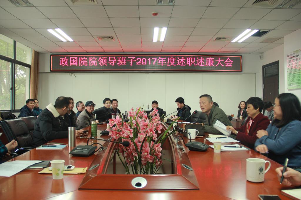 (通讯员 张安琪 陈质晶)根据2017年度考核工作安排,结合《华中师范大学中层领导班子和领导干部年度考核实施办法》的有关精神,3月16日下午,我院在309会议室召开了2017年度领导班子述职述廉大会,会议由我院党委书记段维主持,院长唐鸣代表班子做学院年度工作总结,全院教职工参加。