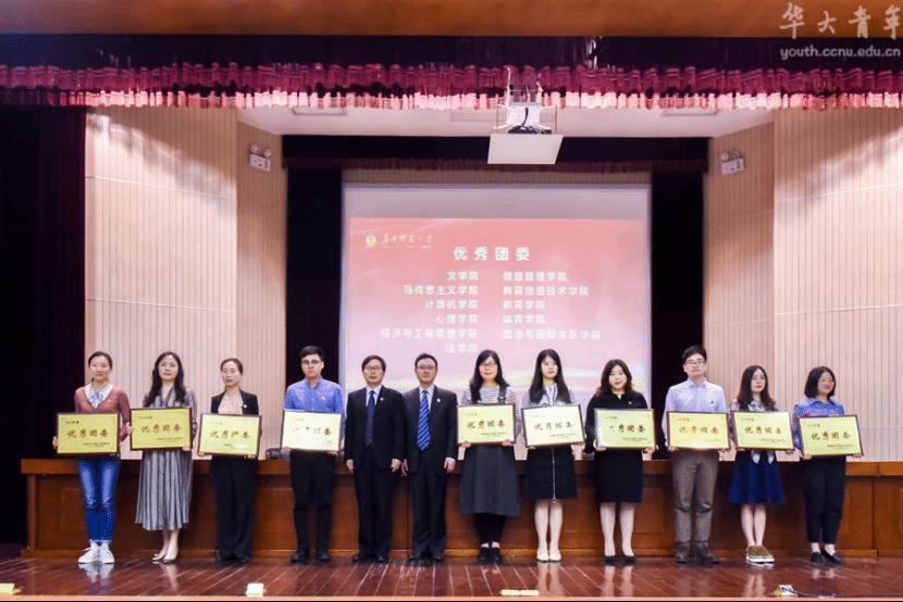 为了贯彻和落实习近平总书记在纪念五四运动100周年大会上的讲话精神,更好的表彰先进、树立典型,5月5日,华中师范大学纪念五四运动100周年暨建团97周年表彰大会在科学会堂举行。我院党委书记段维、党委副书记秦恒、团委书记骆婉婷及学生代表参会。
