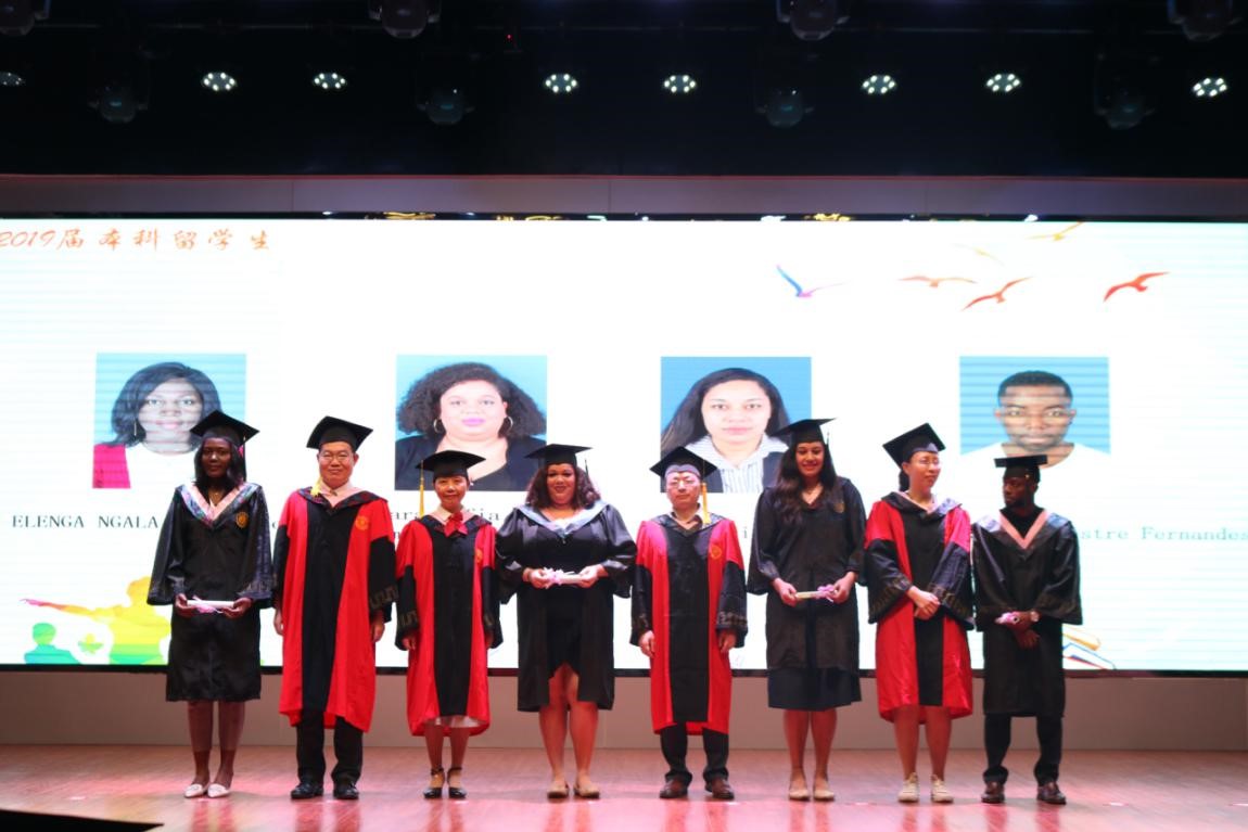 典礼第一项,全体起立,奏唱国歌。典礼进行第二项,播放VCR。VCR回忆了2019届毕业生们在学校的各种精彩时刻,记录了老师们对毕业生们的殷殷嘱托、师兄师姐们对师妹师弟的叮嘱,传达了师妹师弟们对即将离校的师兄师姐们的祝福,现场气氛温馨而感人。