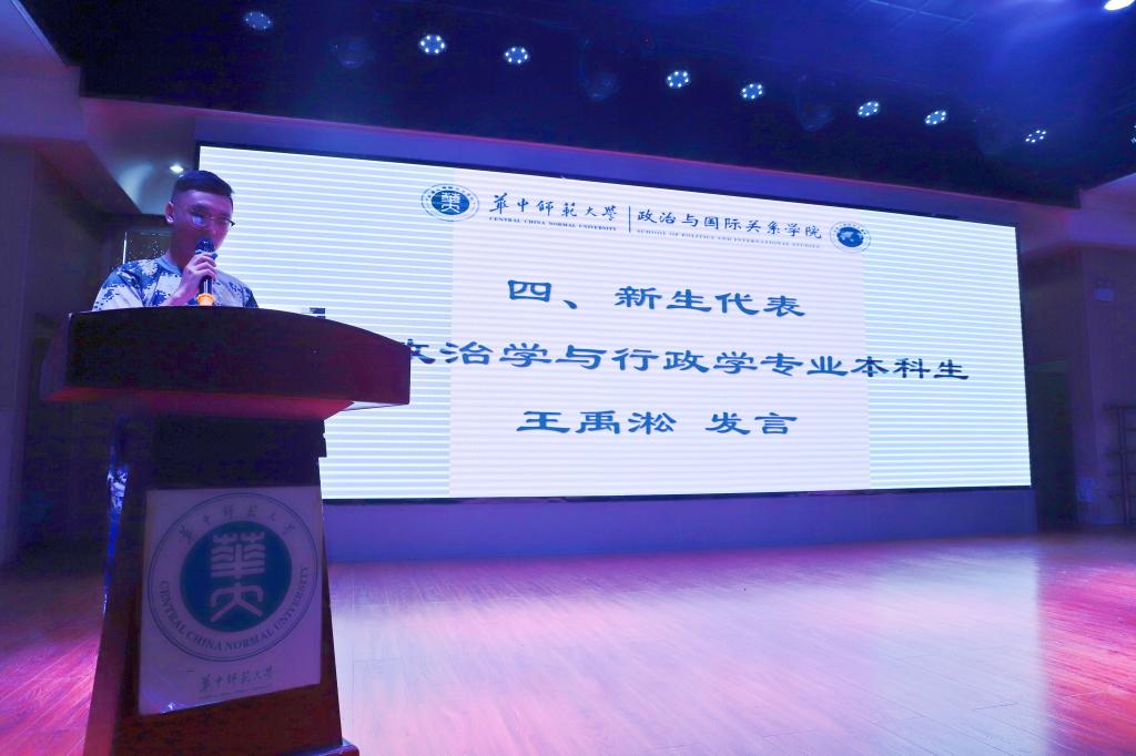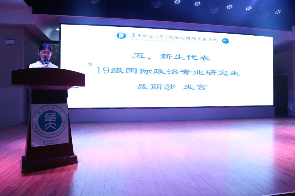 2019级政治学与行政学专业王禹淞作为本科生新生代表发言,他表达了对即将在学院展开新的学习生活的期待,对学院提供的学习资源和教学平台表示感谢,在大学里更要注重学习的重要性。2019级国际政治专业聂丽莎作为研究生新生代表发言,她认为研究生生活意味着更大的挑战,应当珍惜当下、把握学习机会,不断丰富学识,躬行实践,为未来做好充足的准备。