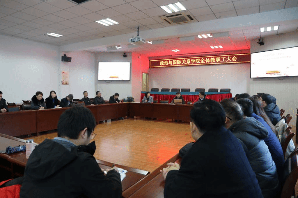 胡宗山院长对过去一年一流学科与基本学科的建设以及教职工人员规模所取得的成就给予充分的肯定。但同时也指出了一些问题:在教学方面,本科学生人数规模偏中等,少数教师教学要求未达标;在科研方面,学院面临转型,科研水平相比去年有所下滑;此外,胡宗山院长还指出,新的一年要重点推进政国学园的建设,加强教学的规范性建设。