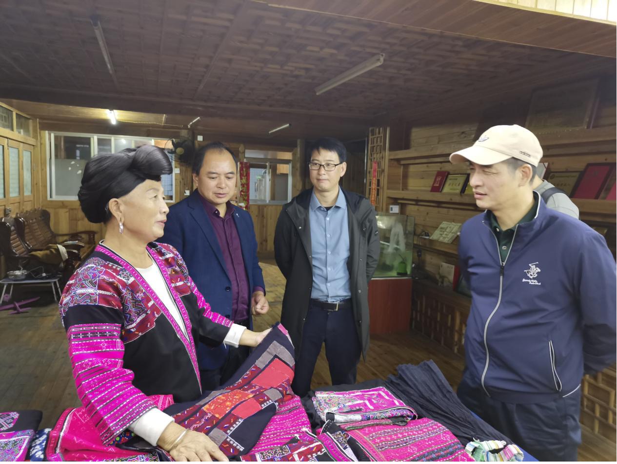 调研期间,牟教授团队先后到位于龙胜各族自治县的“红军岩”“金江红瑶寨”“金竹壮寨”,恭城瑶族自治县的博物馆、莲花镇红岩村和矮寨村等地,深入了解少数民族文化、红军与各族人民的“互动史”、少数民族特色村寨建设、特色产业发展、民族团结进步创建等情况。