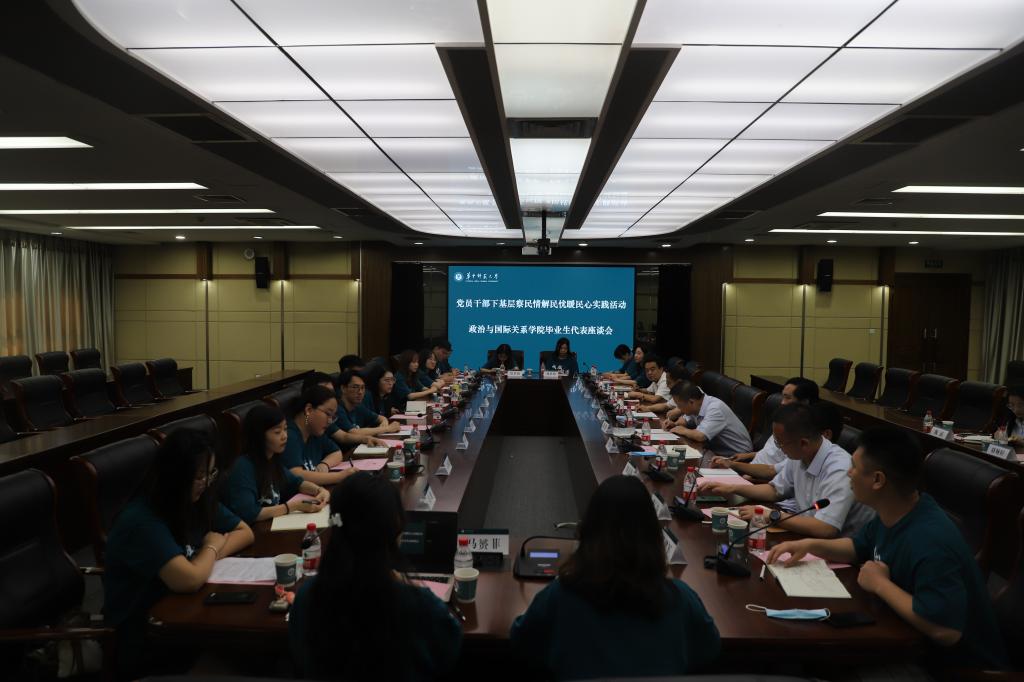 (通讯员 赵云龙)6月6日下午,政治与国际关系学院党员干部下基层察民情解民忧暖民心系列实践活动之2022届毕业生代表座谈会在逸夫国际会议中心二楼会议室召开,校党委副书记查道林、全体院领导、国际政治系主任赵长峰、班主任代表钱道赓、毕业年级辅导员、18名毕业生代表参加了此次活动。此次活动旨在给毕业生搭建一个与学校、学院沟通的平台,鼓励毕业生为学校、学院的发展建言献策,本次活动由学院党委副书记潘广炜主持。