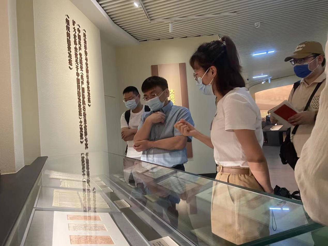 调研第一站是拜访博物馆负责人,并与之进行座谈交流。通过与负责人的对话,团队成员详细了解了馆藏的文献资料。双方还就就如何挖掘党史、宣传党史、讲解党史进行了深入沟通。