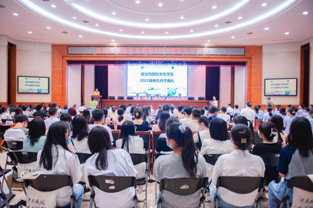 9月9日下午,政治与国际关系学院2022级新生开学典礼在科学会堂一楼报告厅举行。院党委书记段维、院长胡宗山、院党委副书记潘广炜、副院长王建国、副院长黄辉祥出席。全院教职工、全体2022级新生参会。典礼由本科教学秘书李诗溢主持。