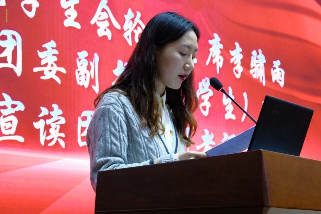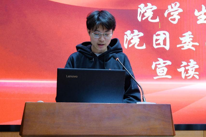 仪式在共青团团歌《光荣啊,中国共青团》中拉开序幕。院学生会轮值主席李骕雨、院团委副书记(学生)殷立分别宣读本科生、研究生团干培训考评条例。条例明确了团干培训分级管理、分工负责的管理体制,提出了包括组织调训、学员管理、考核评价、质量评估等一整套制度机制。