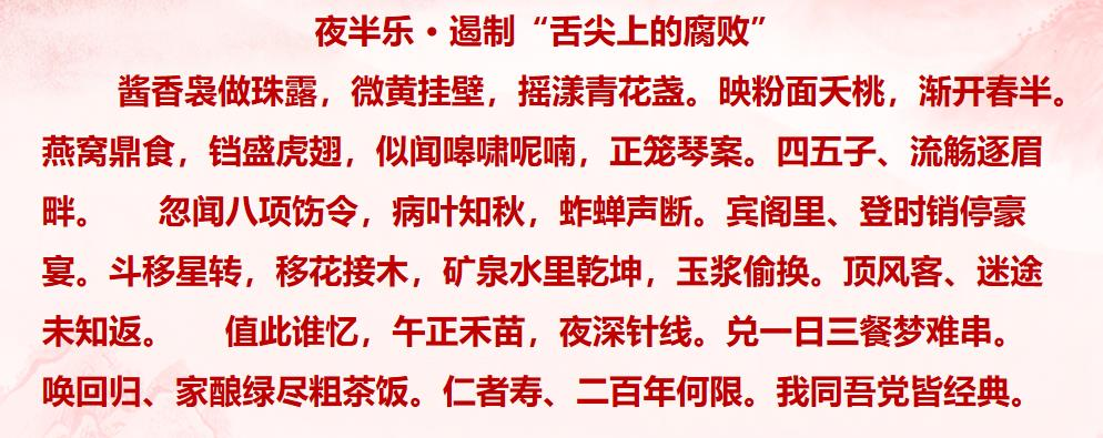 段书记所作《夜半乐·遏制“舌尖上的腐败”》