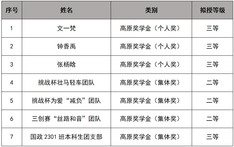 根据《政治与国际关系学院关于评选2024-2025学年高原奖助学金的通知》和《政治与国际关系学院高原奖助学金实施办法(2023年修订)》的相关规定,经学生申请、学工作办审核、高原奖助学金评审委员会评审,现将2024-2025学年高原奖助学金拟获得者名单公示如下: