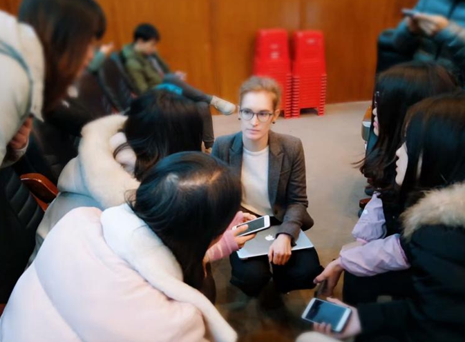 针对“如何获得海外博士学位”这一主题,彭芩萱研究员结合自身经历,向同学们提出了10点建议。针对“国际法”这一主题,Julie Fraser将课程分为四部分:第一部分,国际法概论。第二部分国际法的焦点:国际刑法导论,第三部分,国际刑事司法:修复还是报应?第四部分,对国际法的批判:国际刑事法院。课堂上,同学们积极发言,并开展了新颖的小组讨论。