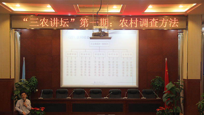 (通讯员 林大祥)2016年10月17日晚上,挂靠于华中师范大学政治与国际关系学院的三农发展与研究协会在模拟联合国实验室(老图书馆四楼)成功举办了“三农讲坛”学术讲座。华中师范大学政治与国际关系学院政治制度所支部书记、博士生导师袁方成教授做了关于“农村调查方法”的学术讲座。参加此次讲座的同学来自华中师范大学多个学院,总计达100余人。讲座由三农协会会长林大祥同学主持。