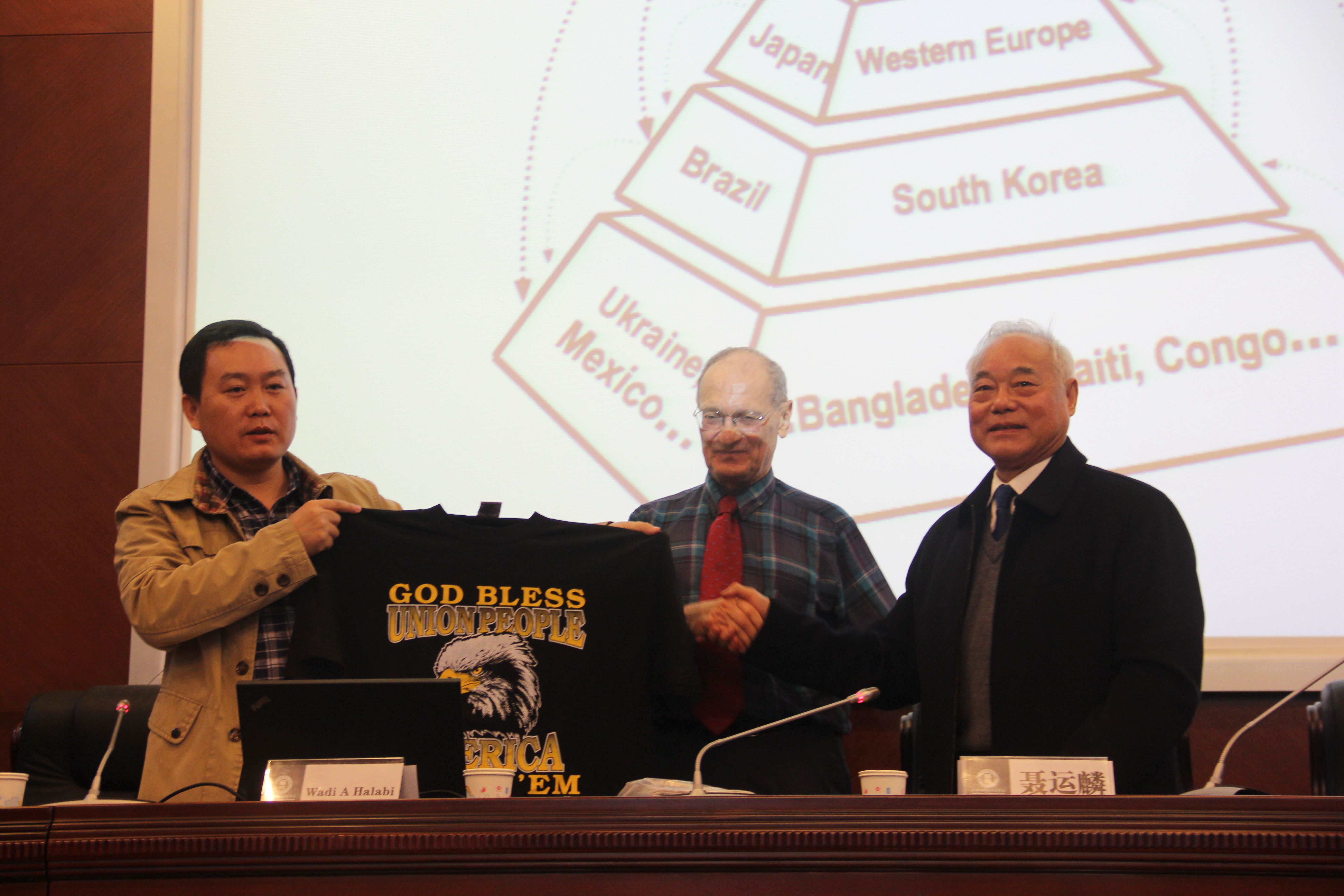 (通讯员 张德林)10月15日上午,应政治与国际关系学院·国外马克思主义政党研究中心的邀请,美国共产党中央经济委员会委员,政治经济学家,美国麻省马克思主义教育中心负责人瓦迪·哈拉比(Wadi A Halabi)教授,作客政治与国家关系学院第20期“高原讲坛”。我院科学社会主义与国际共产主义运动、国际关系、中外政治制度等专业的研究生及部分留学生近一百余人参加了此次学术交流活动。同时本次讲坛还吸引了来自中南财经政法大学、武汉理工大学、河南理工大学等高校的多名专家学者与会。