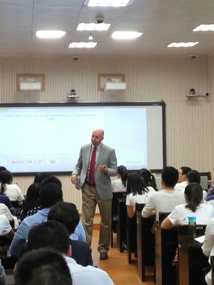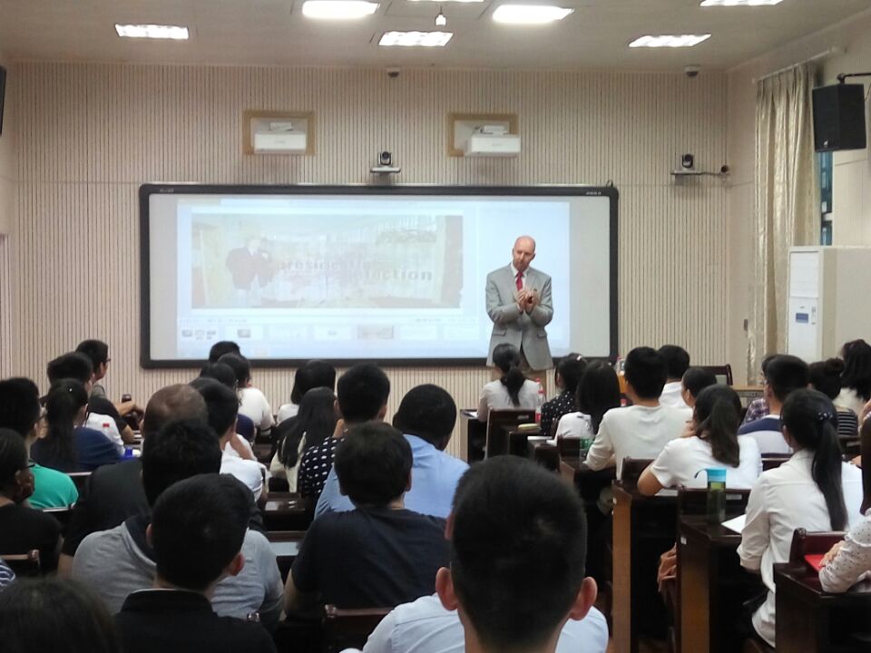 (通讯员 潘文倩)2016年为美国总统大选年。5月13日下午,美国乔治·华盛顿大学史蒂夫·巴拉教授应邀做客华中师范大学第31期百年求索·杰青讲坛。本期讲座在我校1号楼三楼学术报告厅举行,主题为“2016年美国总统大选:谁将胜出?理由何在?”。讲座由华中师范大学政治学研究院研究生会与马克思主义学院研究生会共同承办。