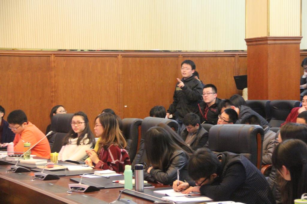 在讲座最后的提问环节中,同学踊跃举手向王老师提问。我院博士研究生魏来首先向王老师问道“应该如何延长学术研究的生命力”,王老师则从选题的时效性、学术对话的方法以及得出结论的解释力等方面对问题进行了耐心解答。王老师以自己丰富的工作经验和生动有趣的语言表达为我院同学们带来了这场极具价值性的学术讲座。