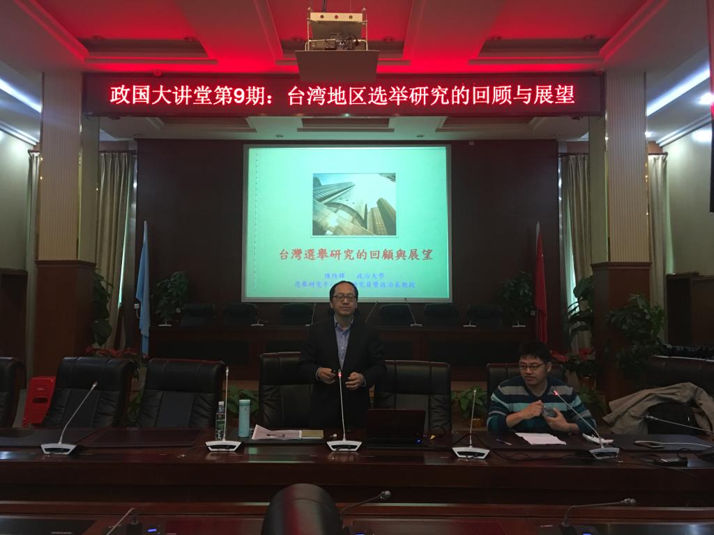 (通讯员 陈质晶)3月22日早上10点,第九期政国大讲堂在模拟联合国会议室开讲,本次我院邀请到台湾政治大学选举研究中心特聘研究员陈陆辉教授为同学们讲授题为“台湾选举研究的回顾与展望”的讲座。本次讲座由我院李宗义老师主持,2016级、2017级全体研究生参加。