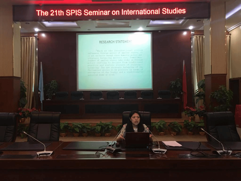 第二位主讲人是来自菲律宾的Zhorea Shara Garcia。她报告的主题是“小国外交:以杜特尔特领导下菲律宾的小国外交为例”。她首先就国际关系中“小国”的概念进行了定义与介绍,紧接着根据自己对菲律宾政治实践的深度理解,就杜特尔特的外交政策与实践进行了梳理与解读,最后,他从博弈论的视角,同大家探讨了杜特尔特小国外交政策的原因、导向与目的。