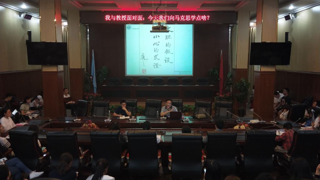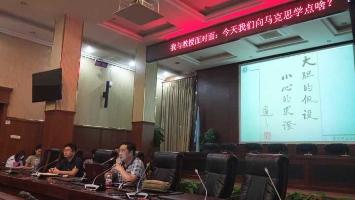 (通讯员董诗艺)为纪念“千年第一思想家”马克思诞辰200周年,深入学习习近平总书记在五四青年节发表的重要系列讲话精神,5月13日晚,利用本科生点名时间,我院以“今天我们向马克思学点啥”为主题成功举办本学期“我与教授面对面”第二期。本次讲座由我院科社所教授、博士生导师,《社会主义研究》副主编王建国老师主讲,本科生辅导员孙延松主持,全体本科生参加。