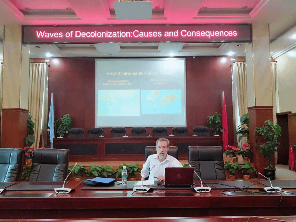在本次授课中,DANE KEITH KENNEDY教授通过五节课的时间向我们讲述了二战前后的国际关系格局与演进。第一节课,DANE KEITH KENNEDY教授讲述了非殖民化浪潮的原因与结果;第二节课,教授阐释了二战与帝国危机,并于第三节课阐述了解放战争与帝国镇压的历史;第四节课,教授详细介绍了民族国家的前途与困境;最后一节课,教授通过二战历史详细分析了帝国连续性和遗忘政治。总共五节的课程,老师坚持授课与讨论相结合的原则,努力引导同学们就相关问题进行提问,课堂气氛十分活跃。教授细心引导,同学们积极参与,大家纷纷表示期待教授再次来到我院授课。