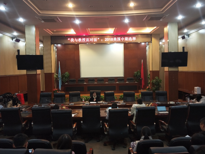 (通讯员 彭蕾晶)为进一步提高学生的培养质量,不断拓宽其专业视野,11月24日晚六点,我院于模拟联合国会议室开展了“我与教授面对面”系列讲座第四期活动。本次讲座以“美国中期选举”为主题,由我院张务教授担任主讲人,18级全体本科生和部分其他年级学生参加。